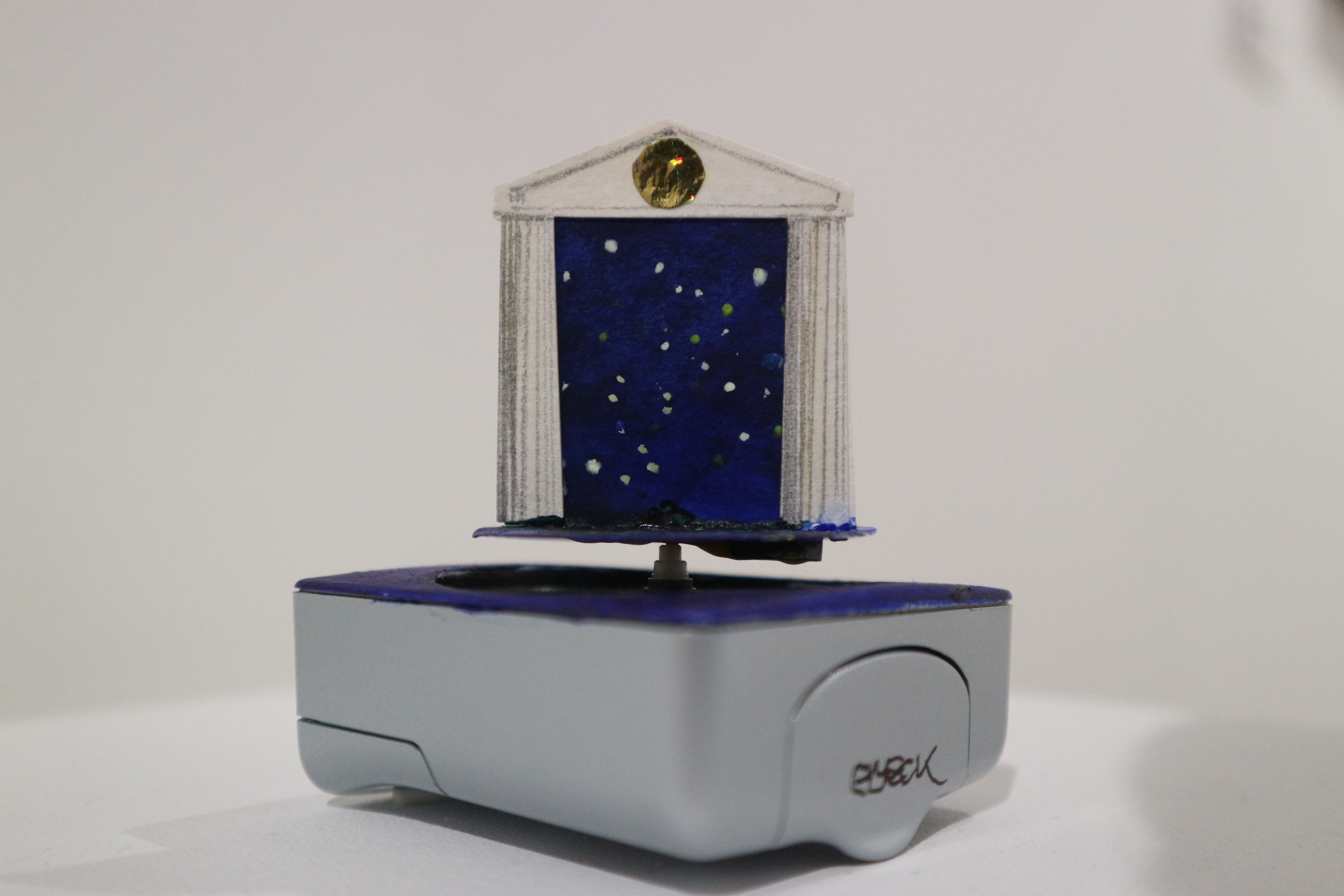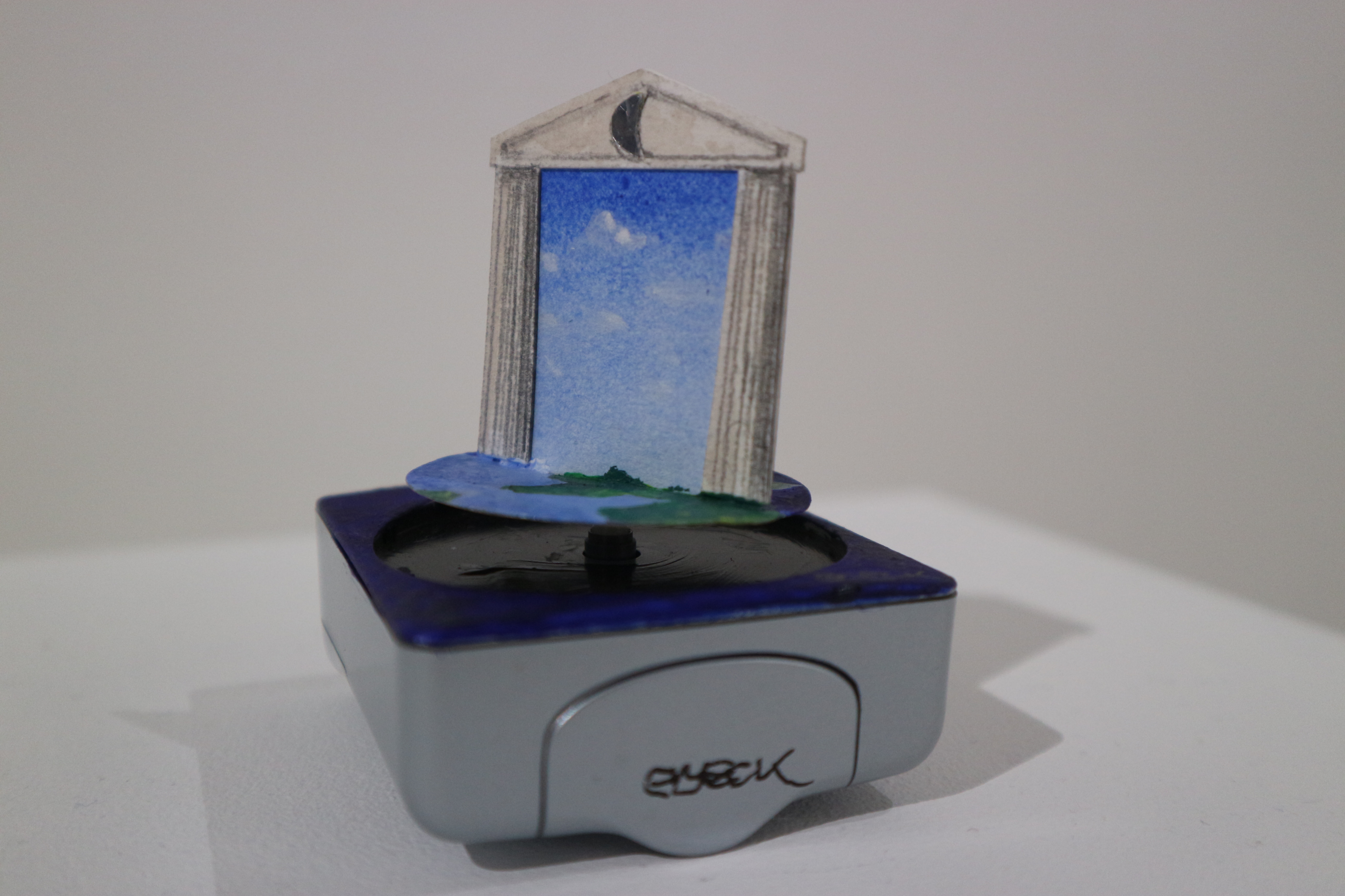Making use of a recycled alarm clock motor, even the material of Eskild’s work speaks to the significance of these eternal cycles of nature, of waking and sleeping, that transcend the individual’s lifespan. In this way, though it is small in size, Eskild’s endearing sculpture is really about the sheer scale of the universe itself, and our own littleness in comparison.